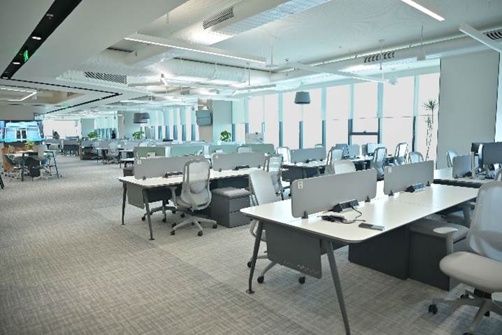 The new workspace features open collaboration zones and immersive experience centres for the company's product lines. The design philosophy reflects a blend of modern efficiency and local culture, providing a premium environment for employees and visiting partners.